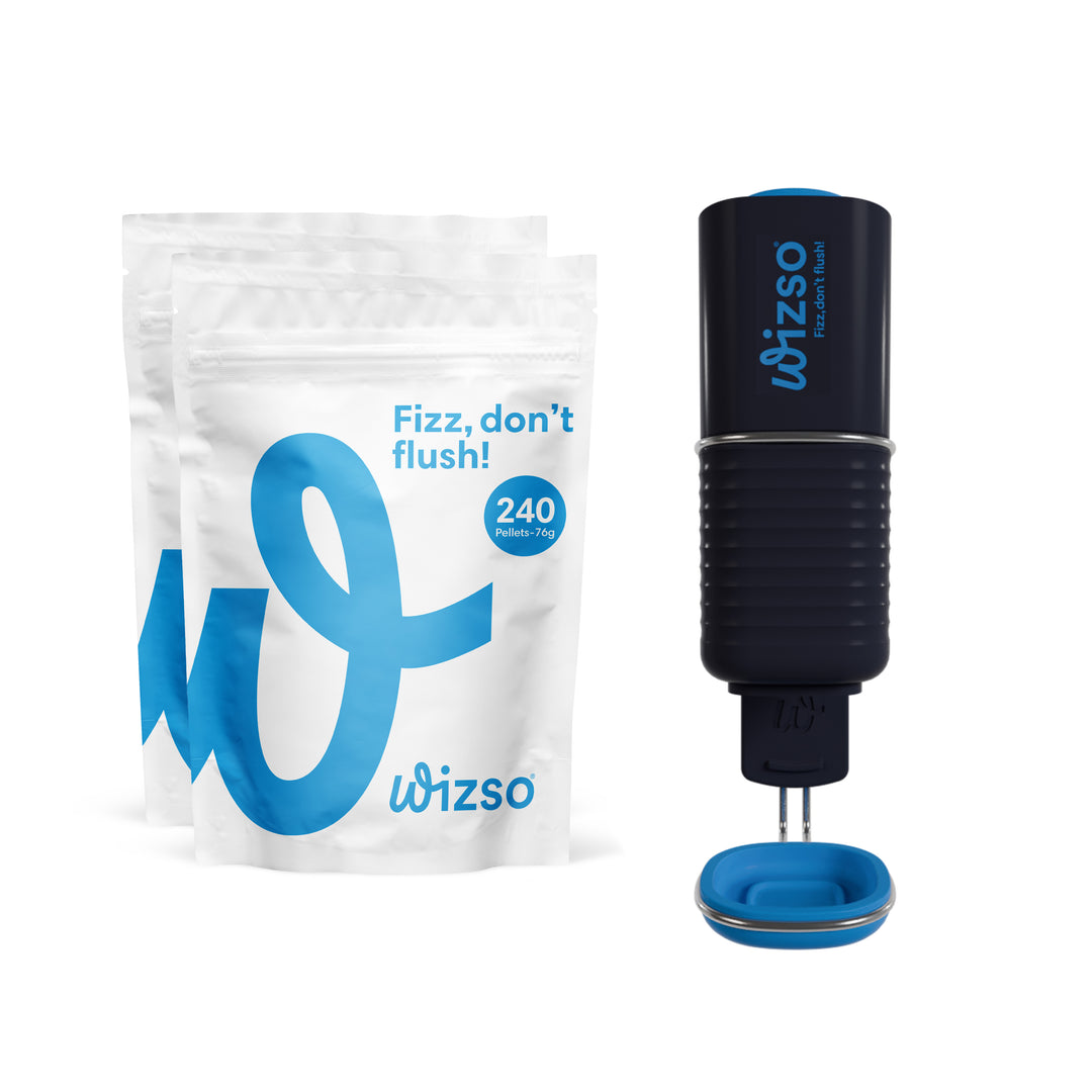 Dropping a Wizso into the loo after a pee turns the water blue and replaces any odour with a fresh lemon fragrance. No need to flush. No need to waste fresh water.